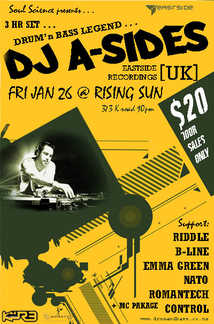 DJs: DJ A-Sides [UK], Riddle, B-Line, Emma Green, Nato, Romantech, Control