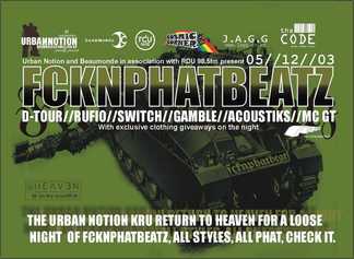 DJs: D-Tour, Acoustiks (live sax and vocals), Rufio, Gamble, Switch